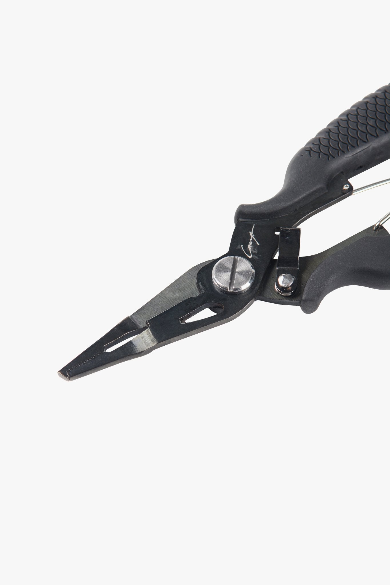 Each pair features special mini split-ring jaws with a crimping function, plus a razor-sharp cutting edge capable of slicing braided line, mono, and even thin wire. The serrated edge ensures a clean, controlled cut every time. Soft TPR handles provide a secure, non-slip grip, while the spring-loaded mechanism reduces fatigue during repetitive use. The lock guard keeps your tool safe and compact when stored or clipped to your gear.
